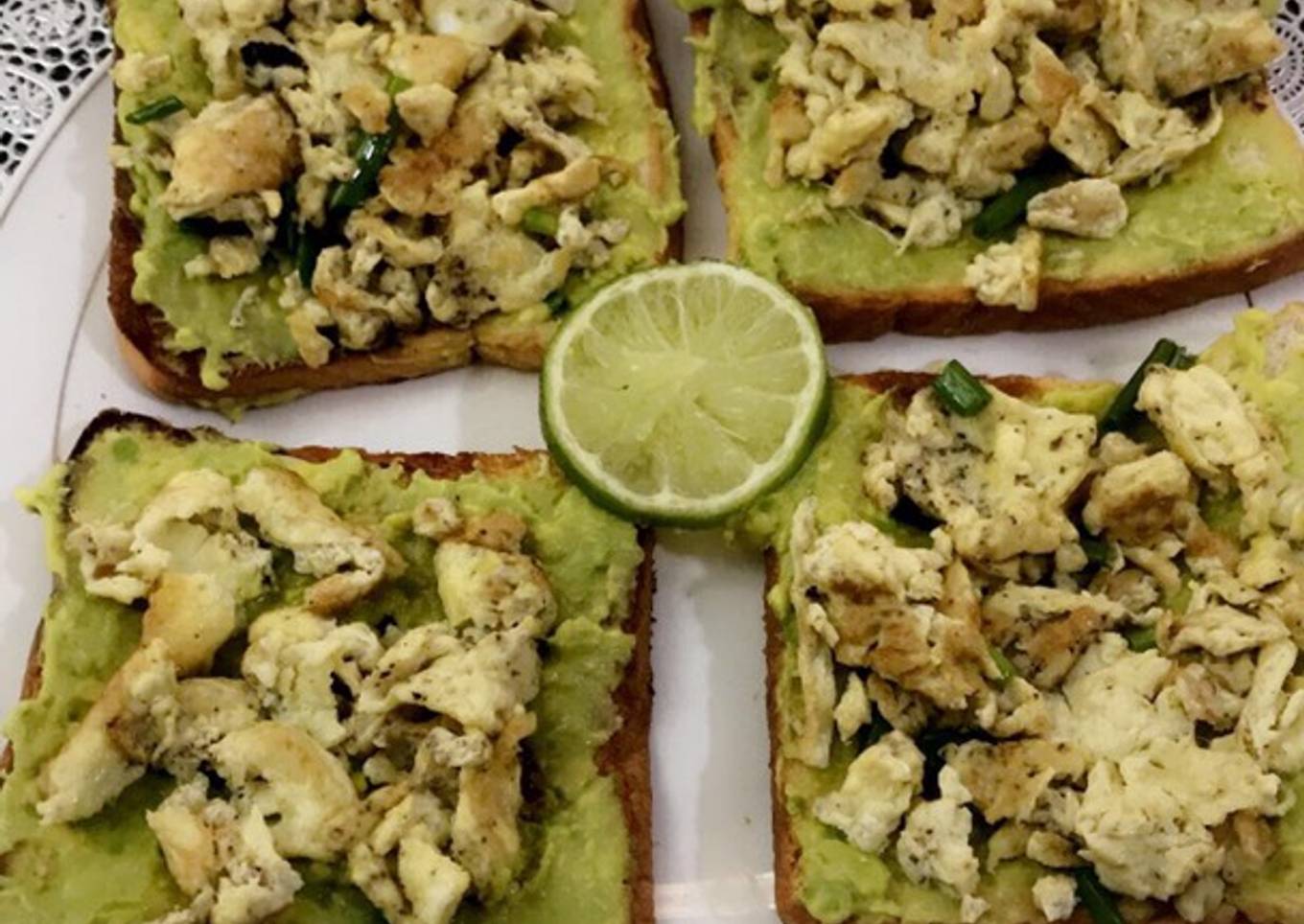 - Toma el pan 🍞 tostados con una cuchara agrégale la paste que hicimos de aguacate, luego colócale el huevo ya revuelto y cocido y para terminar él puerro.