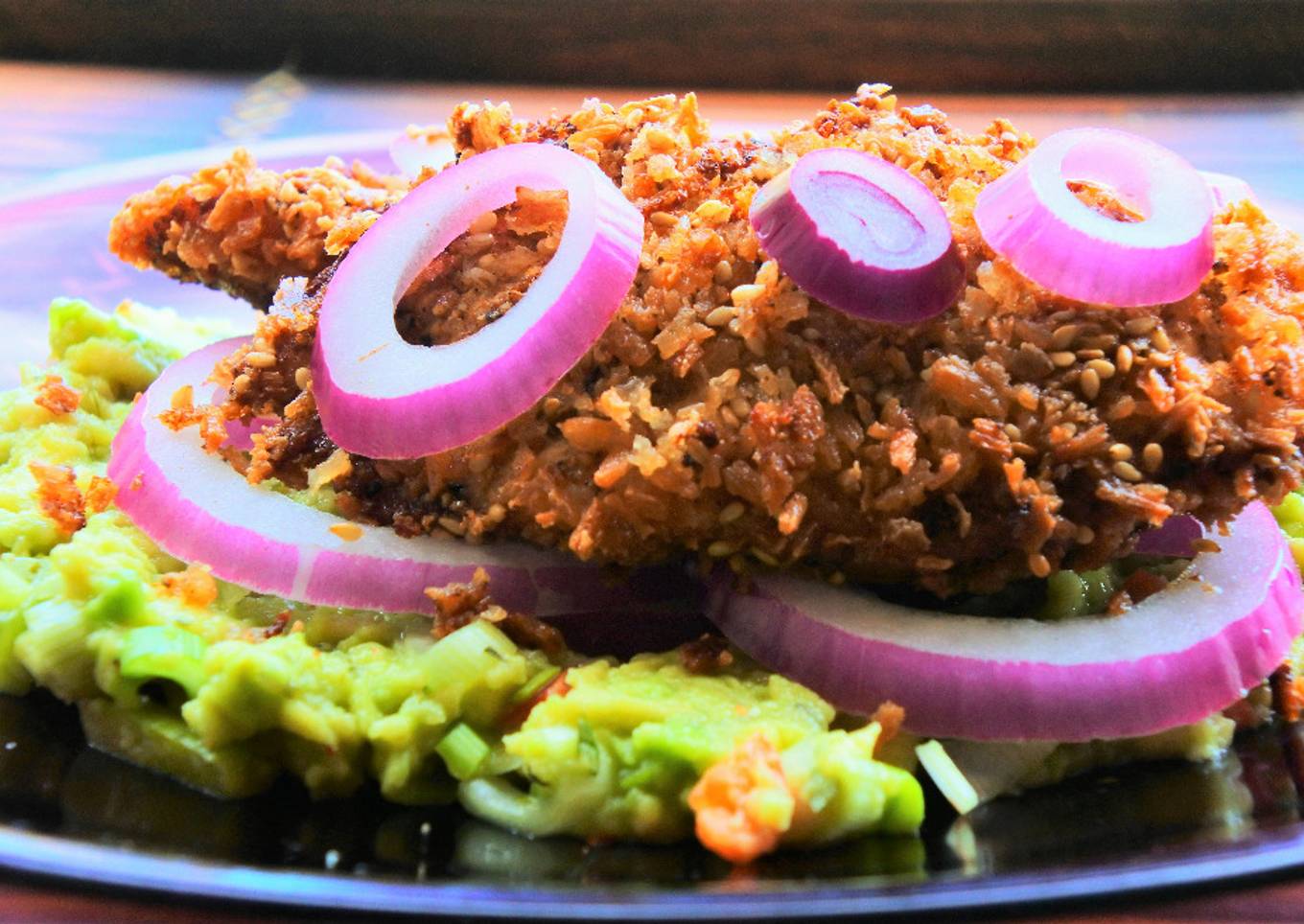 - Mezclar todas las especias, el ajo y la sal en un bol, junto con el zumo de limón y el aceite de oliva. Untar las pechugas y dejar marinar en la nevera. mínimo 1/2 h. Mezclar el panko con el sésamo y empanar bien las pechugas. Freír en abundante aceite