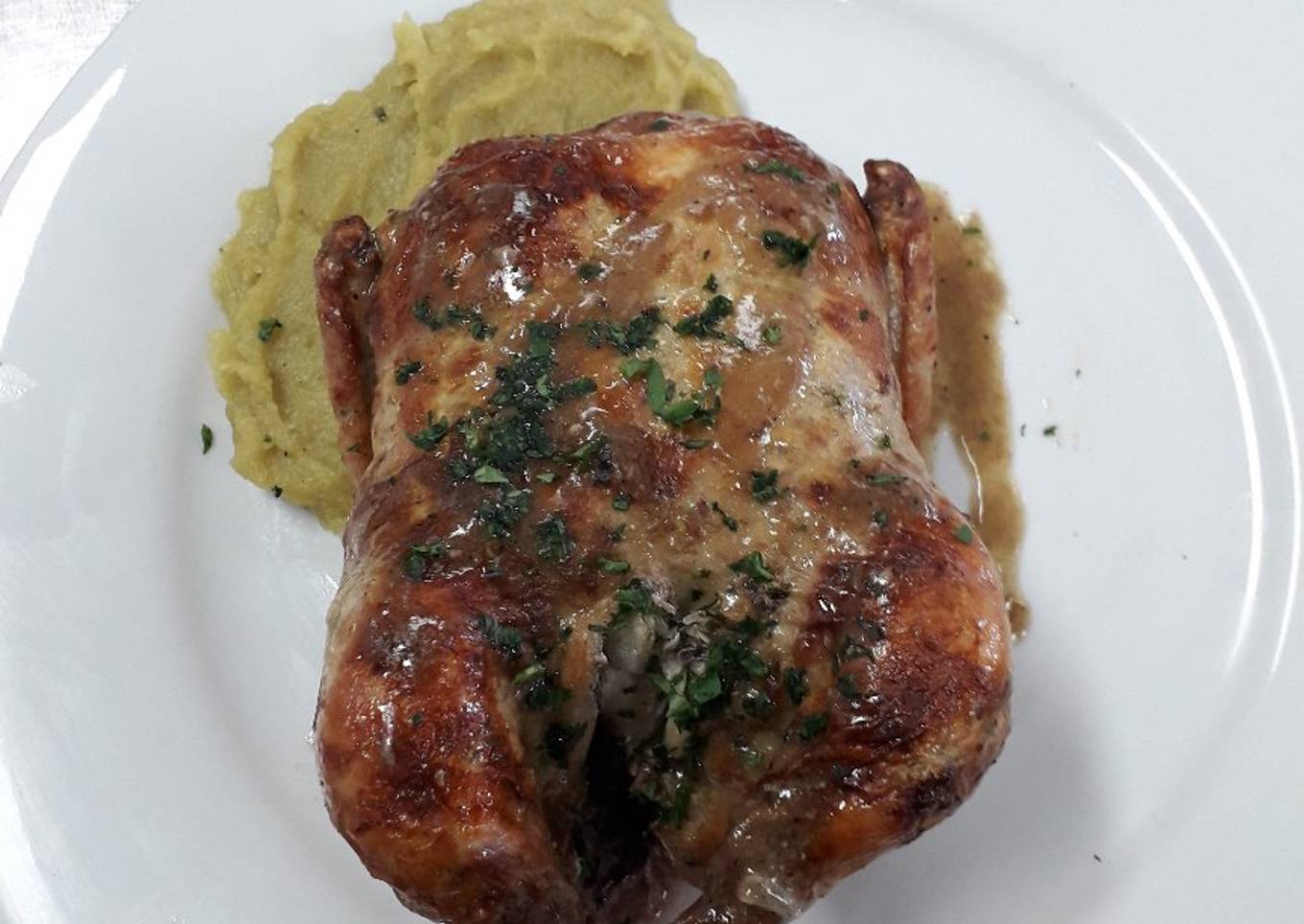 Pollito BB Trufado con Hierbas y Puré de Batatas