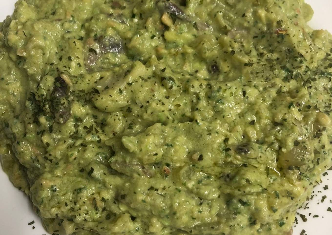 92. Espaguetti de calabacín y setas con pesto de aguacate (principal verdura)