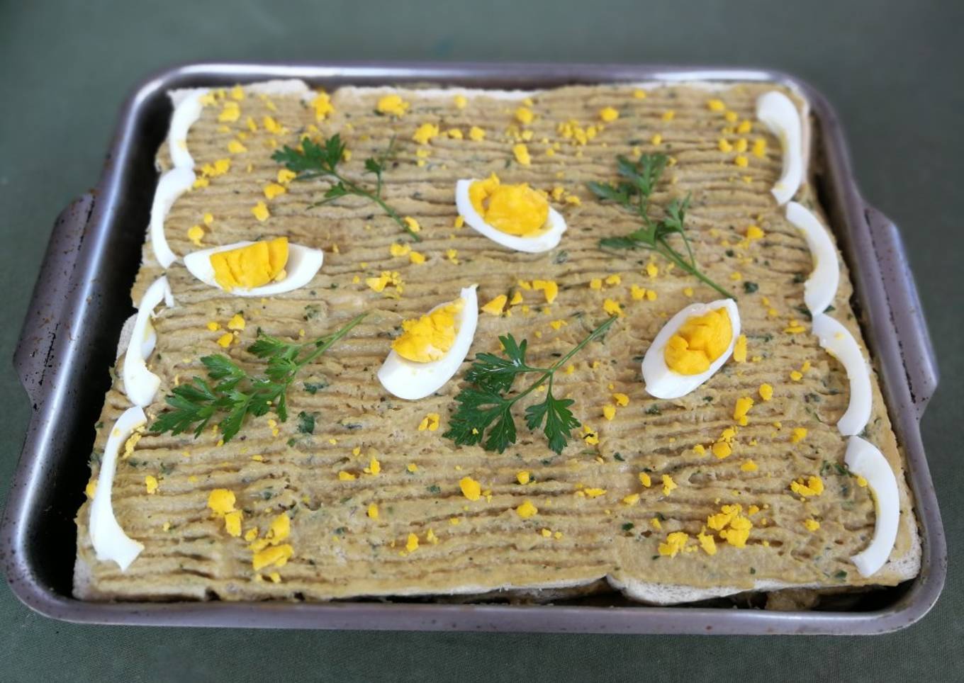 - Yo decoré con hojas de perejil fresco y huevo duro, cada uno a su gusto.