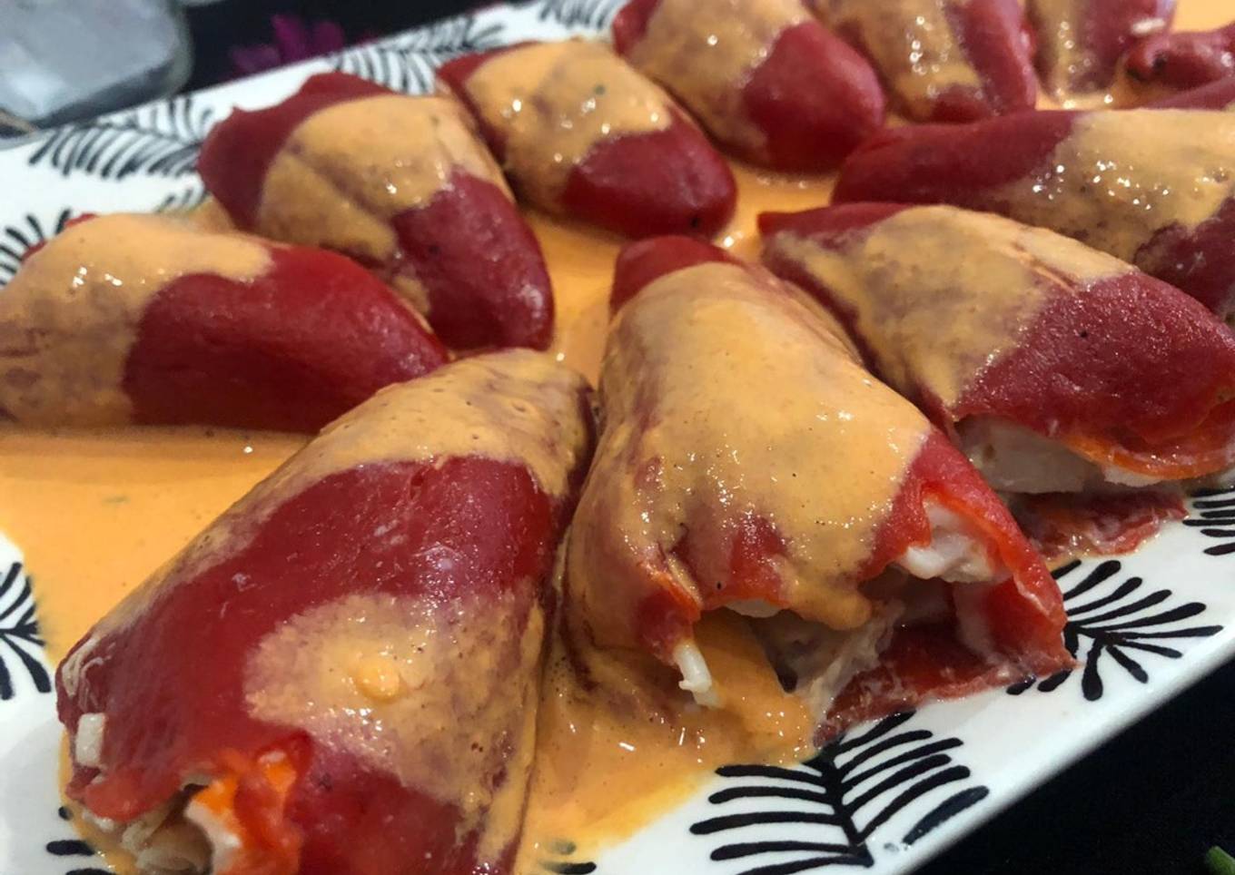 Pimientos del piquillo rellenos de salmón, aguacate y surimi