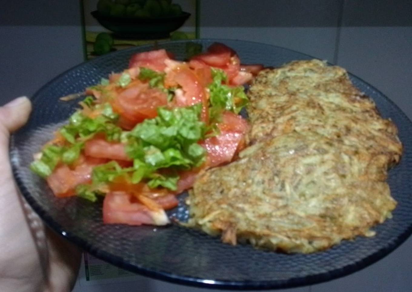 - Mezclar y poner la preparación en una sartén. La cantidad de cada rosty debe ser de 1 cucharada de mezcla. Darle la forma con la cuchara y cocinar 5 minutos a fuego medio de cada lado.